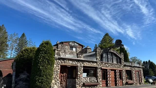 LEGS INN, named for the stove legs that trim the roofline, is one of Michigan´s most exuberant and unusual landmarks. The building reflects Stanley Smolak´s creativity and the craftsmanship of local Odawa (Ottawa) Indians. A Polish immigrant, Smolak came to the United States in 1912 and settled in Cross Village in 1921. During the 1930s Smolak enlisted the labor of Odawa and other area residents to construct the inn from locally gathered timber and stones. A self-trained artist, Smolak used tree roots, limbs and driftwood to carve fantastical creatures into the furniture and decorative objects used in the inn. He called the carvings “nature´s oddities.” Until his death in 1968 at age 81, Smolak continued his creative work at the inn, which had become a social center for the community.